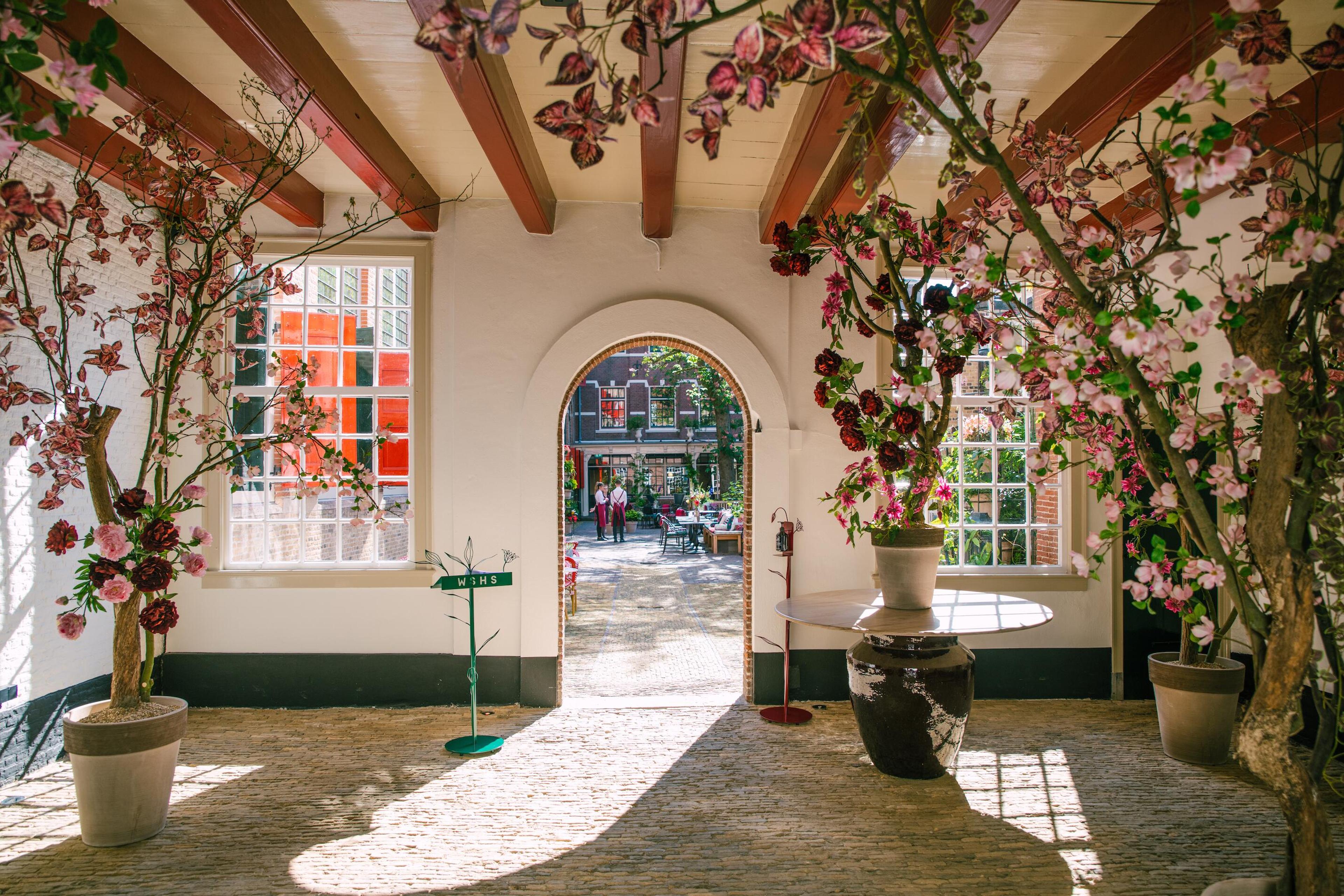 As you walk up the cobbled streets and see the beautiful facade with red shutters, you will immediately feel the centuries-old history that the building holds. Subsequently, walk through the historic gate into the courtyard and you will be surprised by an atmospheric patio filled with colourful flowers. At reception, you will be welcomed by the hospitable staff and the unique look and feel of the hotel. Expressive colours, special prints and various nods to the history of the hotel and its location form a perfectly fitting whole.