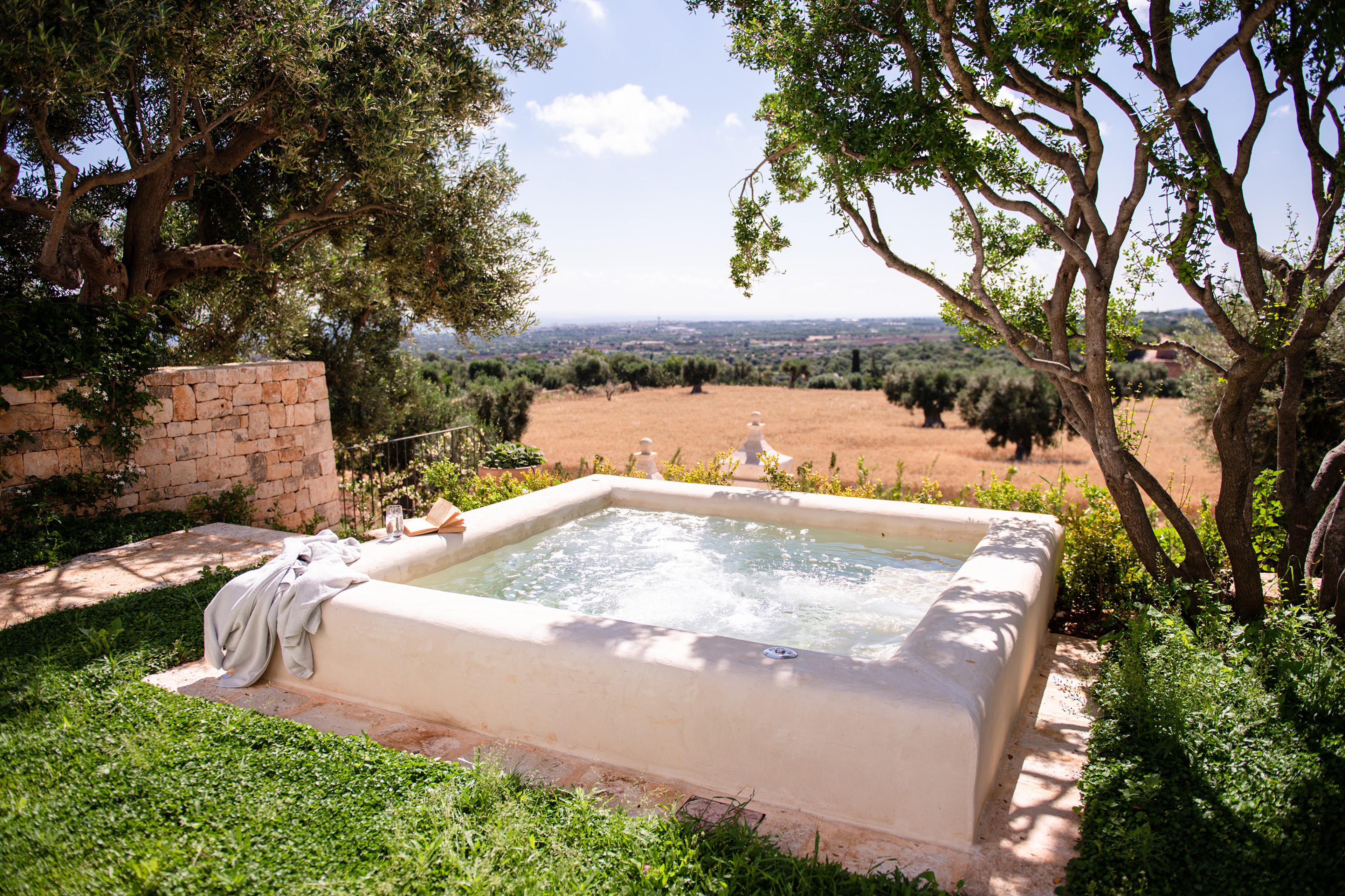Een ander enorm pluspunt van een verblijf bij Masseria Auraterrae is het panoramische zwembad. Lekker luieren aan het zwembad is hier namelijk een must; het is de plek om tot jezelf te komen en in de verte de zon in de zee te zien zakken. Het zwembad ligt verhoogd en biedt daardoor een wonderschoon uitzicht over zee en Polignano a Mare. Daarnaast vind je er ook een whirlpool te midden van de natuur, met zicht op het pittoreske plaatsje Abbazia di San Vito. Het bad is gelegen onder een enorme olijfboom die je beschermt tegen de zon. Op zoek naar nog meer ontspanning? Dan biedt het hotel ook verschillende wellnesservaringen aan. Een buitensauna biedt de mogelijkheid voor een privé saunasessie, die je kunt aanvullen met aromatherapie, gezonde drankjes en snacks. Om te rusten is er buiten in de natuur ook een speciale ontspanningsruimte.