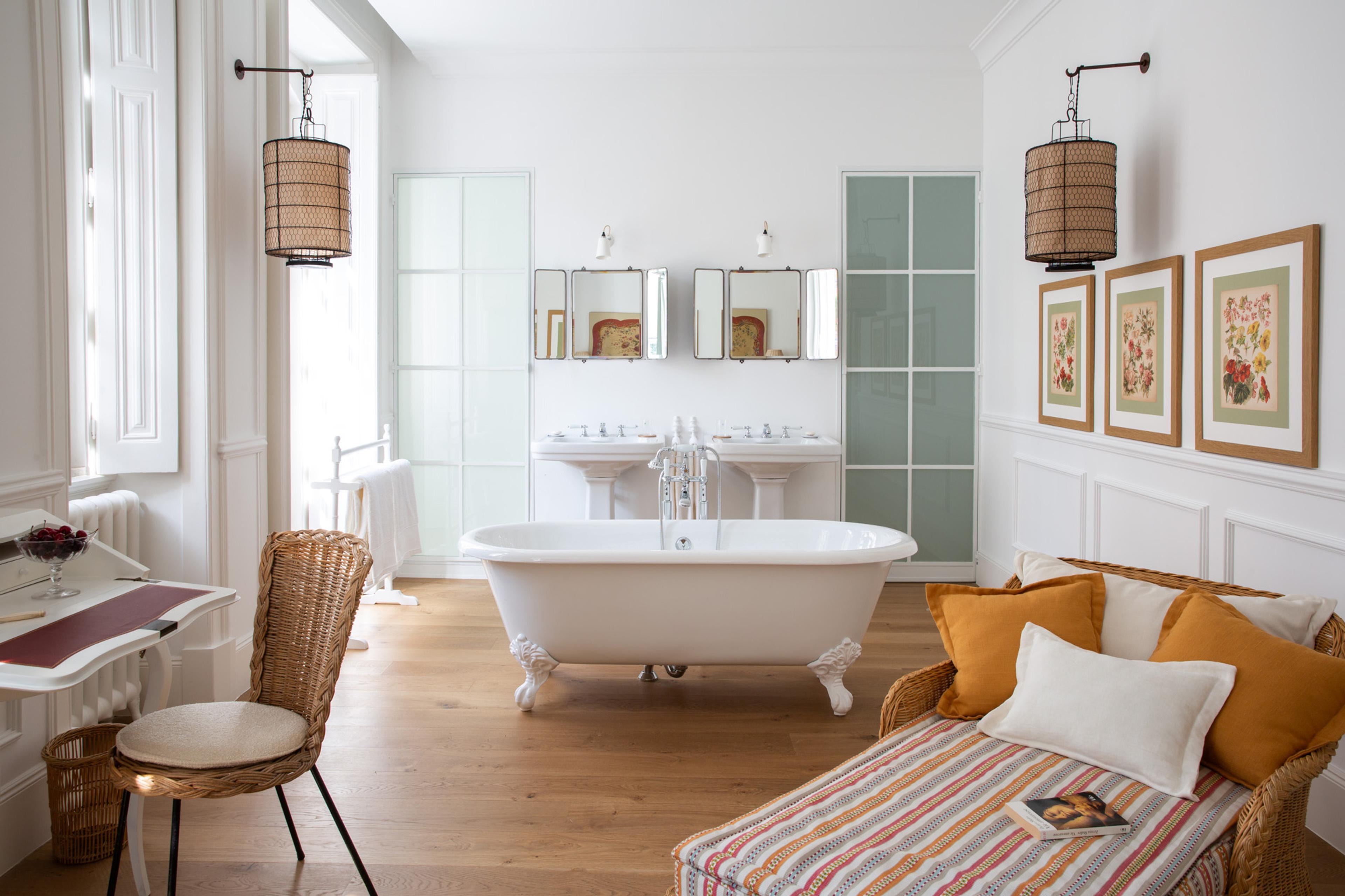 Het 19e-eeuwse herenhuis is gerenoveerd met behoud van grandeur. Interieurontwerpster Rose Fournier heeft de ruimtes gevuld met een eclectische mix van rotan stoelen, vintage meubels, handgemaakt keramiek en kunstobjecten. Het geheel voelt romantisch, luchtig en huiselijk tegelijk. Zachte kleuren, natuurlijke materialen en bijzondere details zorgen voor een interieur dat uitnodigt tot ontspannen en ontdekken.