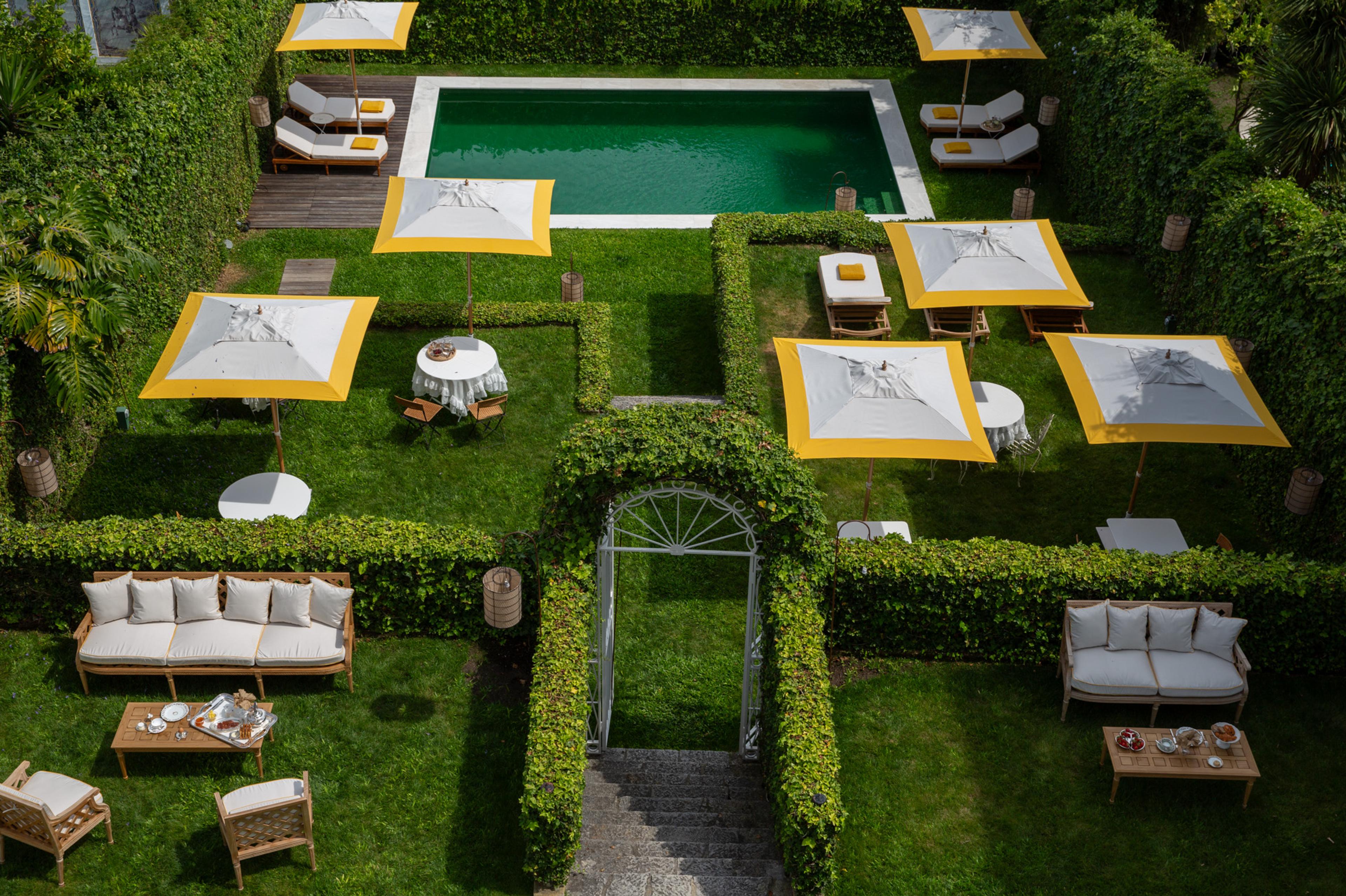 Een van de grootste verrassingen is de terrastuin met zwembad, waar je de stad even vergeet. Het turquoise water, de rotan ligbedden en de groene planten zorgen voor een mediterrane sfeer. Hier ontbijt je in de ochtendzon, zoek je ’s middags verkoeling of geniet je ’s avonds van een glas wijn onder de sterren.