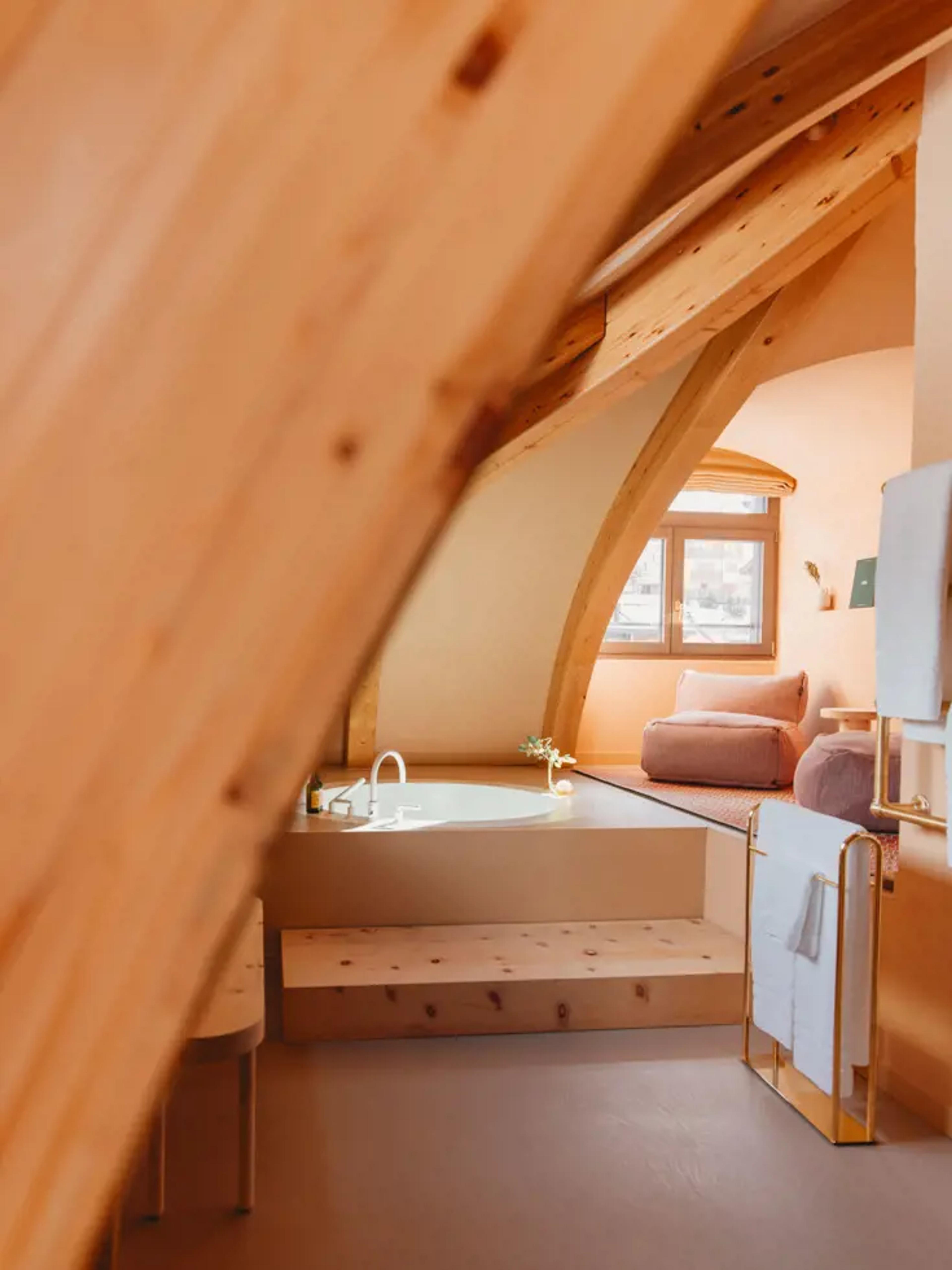 Binnen is Beausite warm, kleurrijk en modern ingericht, met een alpine stijl die een speels karakter heeft zonder zijn elegantie te verliezen. Het hotel voelt toegankelijk en ontspannen, maar wel met een aandacht voor detail die opvalt. Het ontbijt is uitgebreid en past goed bij de bergomgeving: knapperige broodjes, kazen, eieren op verzoek, huisgemaakte jam en voor wie zin heeft een glas bubbels. Ook het eten in het hotel is aangenaam en smaakvol, met meerdere restaurants waar je terecht kunt voor een prettige en ongedwongen maaltijd.